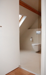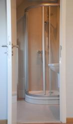 - Betegelde douchekamer (*) met WC, lavabo, douche