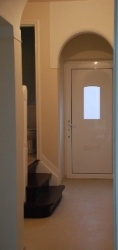 - Het gelijkvloers is betegeld met licht beige/zandkleurige tegels (*)